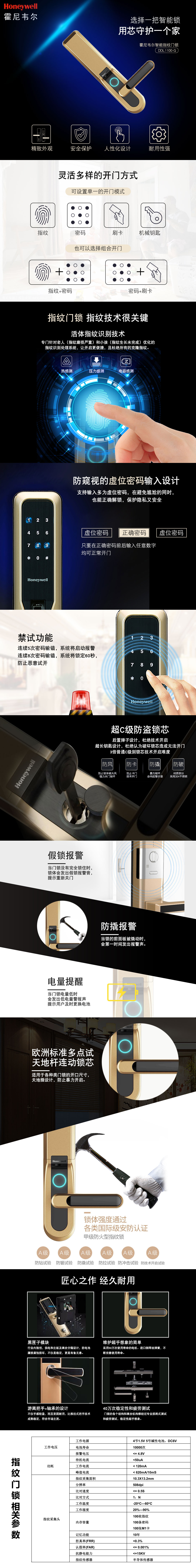 霍尼韋爾智能門鎖智能液晶屏設計,指紋/ 刷卡/ 密碼/機械鑰匙多種開鎖模式,操作簡單快捷,安全性能更高。...